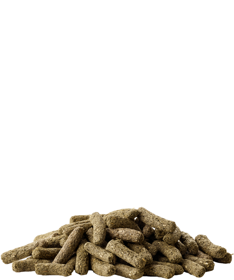 As fibras longas e a estrutura dos pellets garantem um desgaste dentário suficiente.