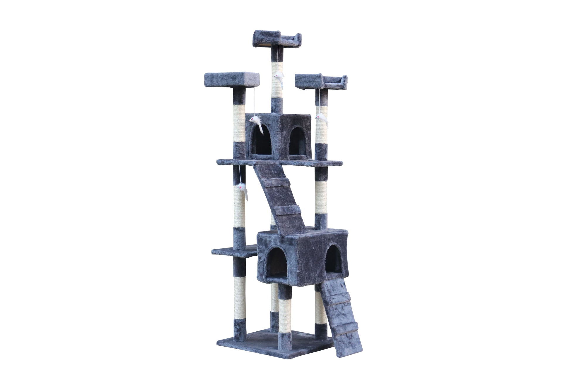 Graças a este arranhador, o seu animal de estimação pode evitar sentir-se estressado ou destruir completamente os móveis de sua casa. Os gatos podem pular entre as plataformas, repousar na rede, brincar com a bola divertida e arranhar, mantendo as unhas perfeitamente afiadas no sisal.