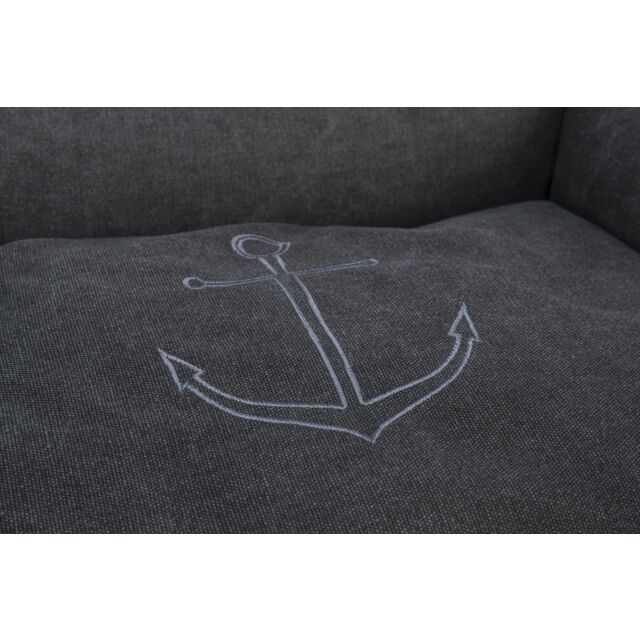 Cama com cobertura de algodão e poliéster, a imitar lona, e enchimento com flocos de esponja. Resistente e de alta qualidade, com uma pega e um fundo antiderrapante. Tem uma cobertura amovível e um colchão bem ajustado. Fabricado na União Europeia.