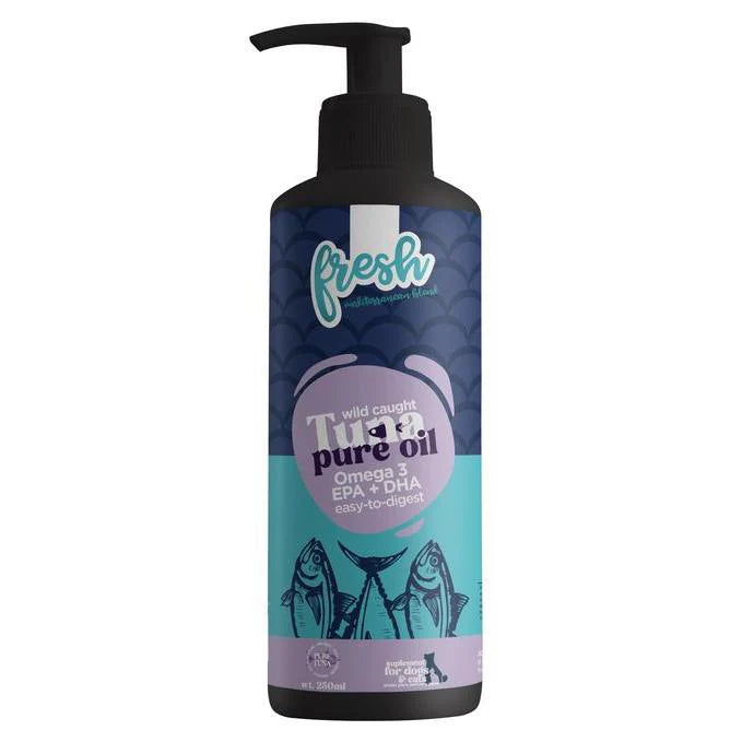 Suplemento alimentar 100% natural sem aditivos obtido a partir de óleo de atum de alta qualidade rico em ácidos gordos Ómega-3 (EPA e DHA) Contribui para reforçar o sistema imunitário melhorar a mobilidade articular favorecer o desenvolvimento cognitivo e fortalecer pelo pele unhas e dentes Um complemento saboroso e saudável para a dieta diária do seu cão ou gato