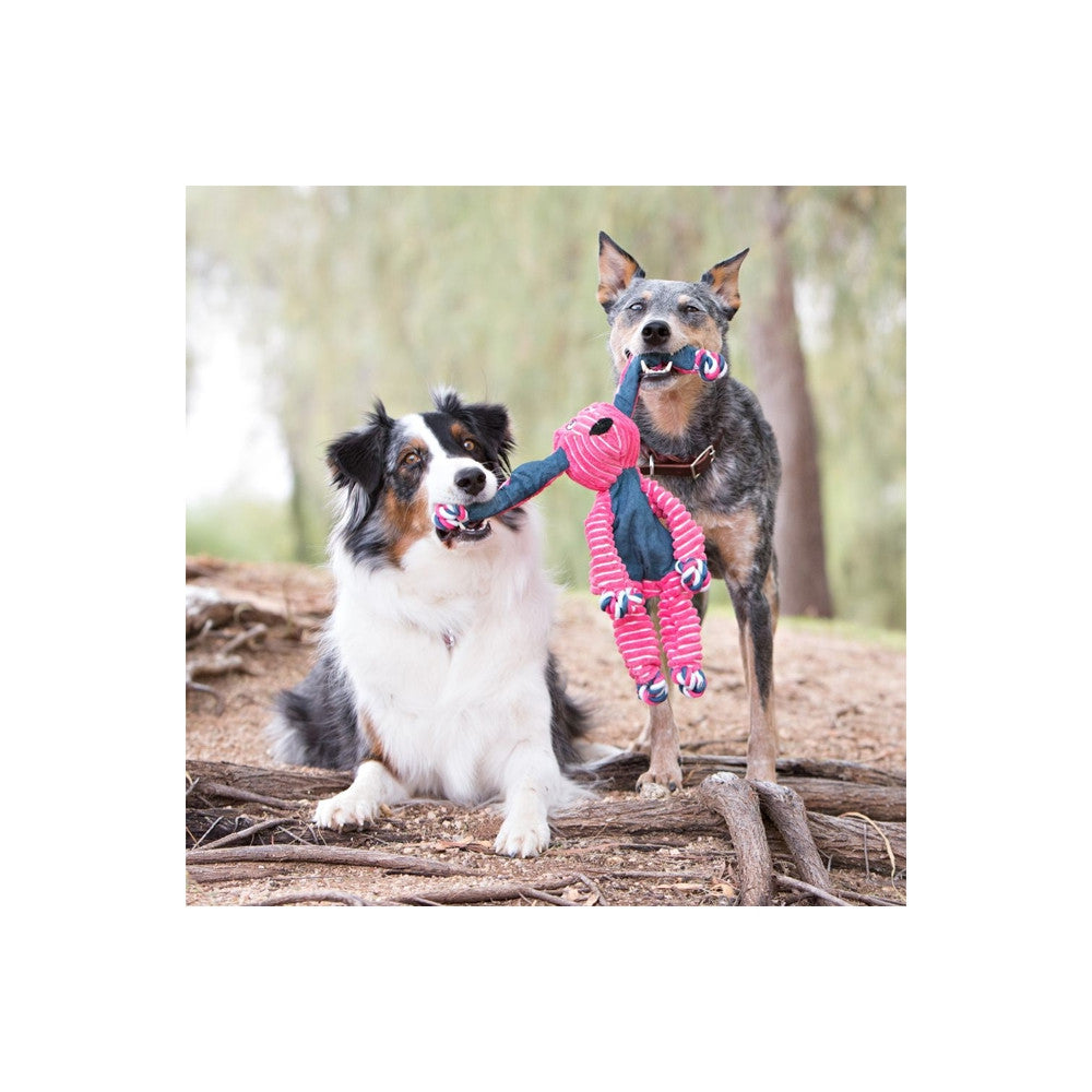 KONG Floppy Knots é o mais novo lançamento na tribo Knots com um design alegre e flexível, confortável e divertido. A sensação realista das cordas com nós internamente satisfaz os instintos naturais enquanto a variedade de texturas e apitos prepara a brincadeira. Com o mínimo de enchimento para menos sujeira, prepare-se para jogos e brincadeiras divertidas.