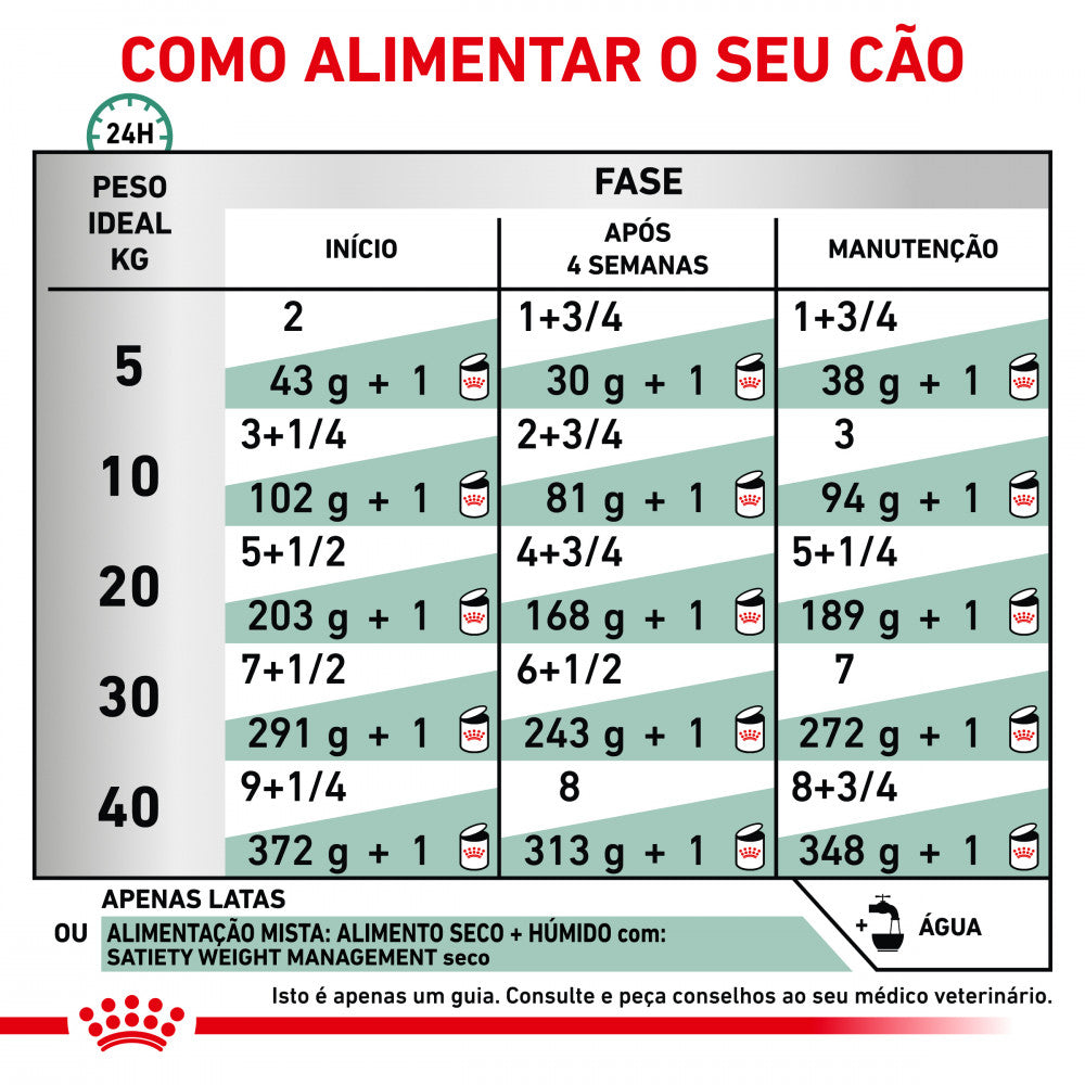 ROYAL CANIN Satiety Weight Management é especificamente formulada para ajudar a promover uma perda de peso eficaz e segura e a manutenção posterior do peso saudável em cães adultos com excesso de peso ou obesidade.