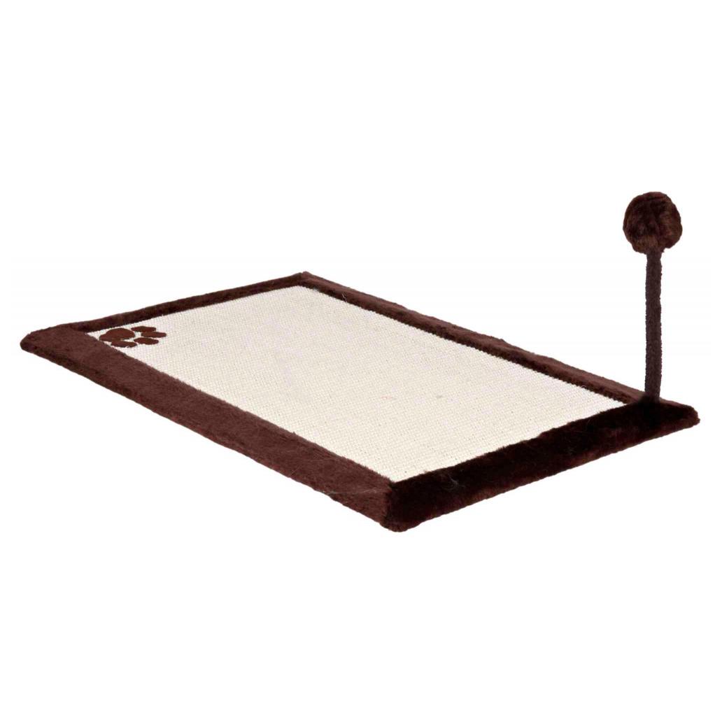 Se dispõe de pouco espaço e gostava de proporcionar um pequeno recinto para o seu gato, este tapete da trixie poderá ser o recurso de que necessita. Um objeto de fácil transporte, adequado a qualquer lugar ou ambiente. É forrado em pelúcia (poliéster) nas bordas e possui uma grande superfície em sisal, superfície esta que permite ao animal que arranhe ou afie as suas unhas. Possui ainda um brinquedo em mola, despertando a curiosidade do animal para uma diversão sem fim. Este tapete possui uma parte traseira em EVA (borracha) e tanto pode ser colocado e utilizado no chão como pode ser pendurado.