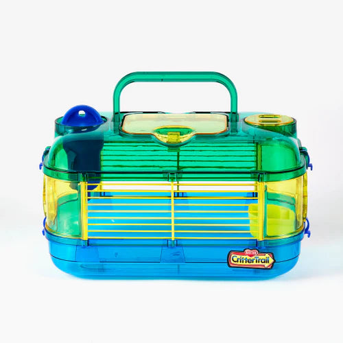 Este habitat de viagem expansível é perfeito para todos os hamsters, gerbos e ratos. A pega de transporte prática facilita a viagem e o transporte. Pode ser ligado a outros habitats CritterTrail para criar mais espaço para o seu animal de estimação explorar ou para o manter seguro durante a limpeza da gaiola. Esta gaiola liga-se a outros habitats expansíveis CritterTrail para criar um espaço adicional quando não está a ser utilizada como transportadora. A ligação a outros habitats CritterTrail requer um acessório CritterTrail Fun-nel Tube, vendido em separado.