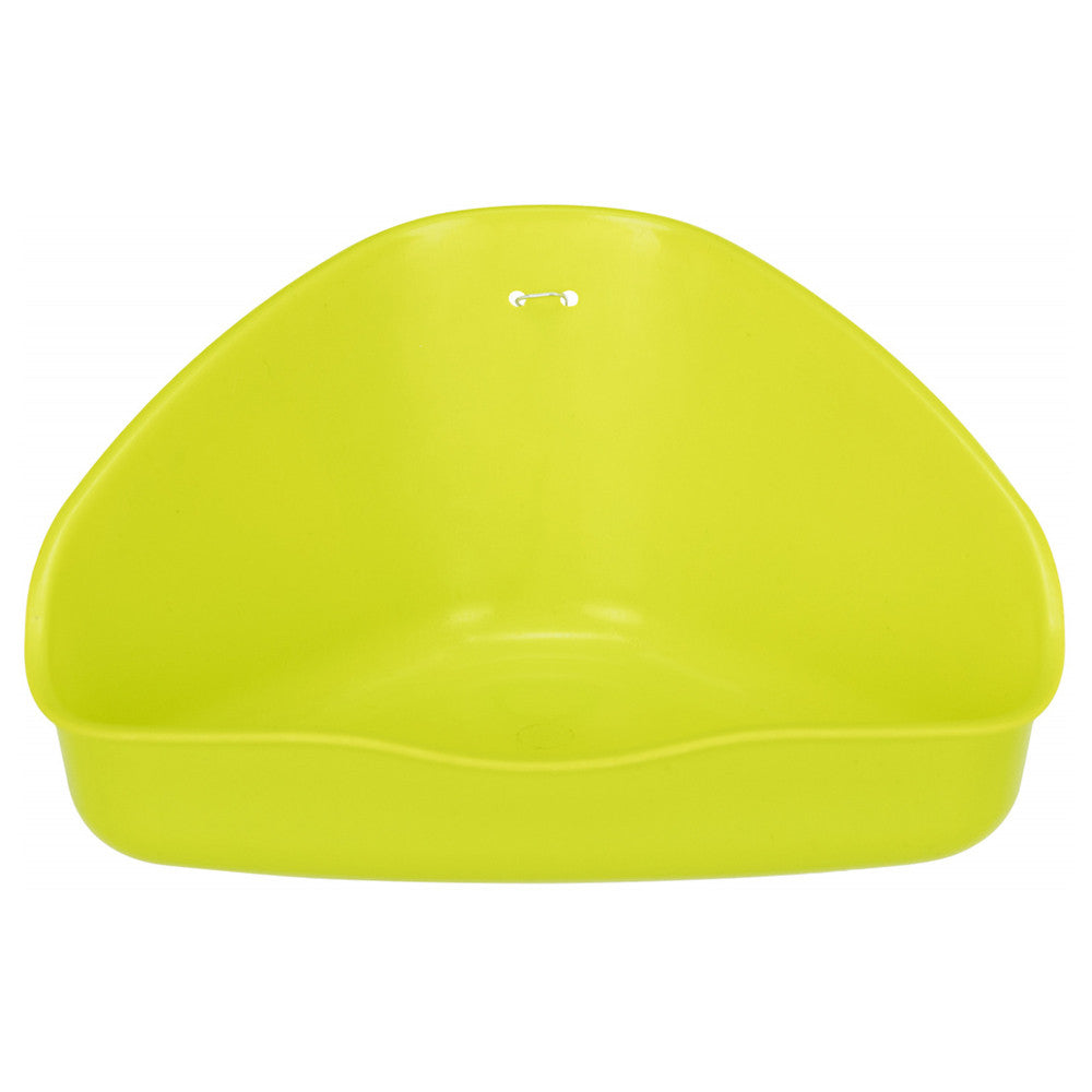 WC de canto Trixie com suporte, ideal para roedores. Prático, higiénico e fácil de limpar, ajuda a manter a gaiola organizada e livre de odores.