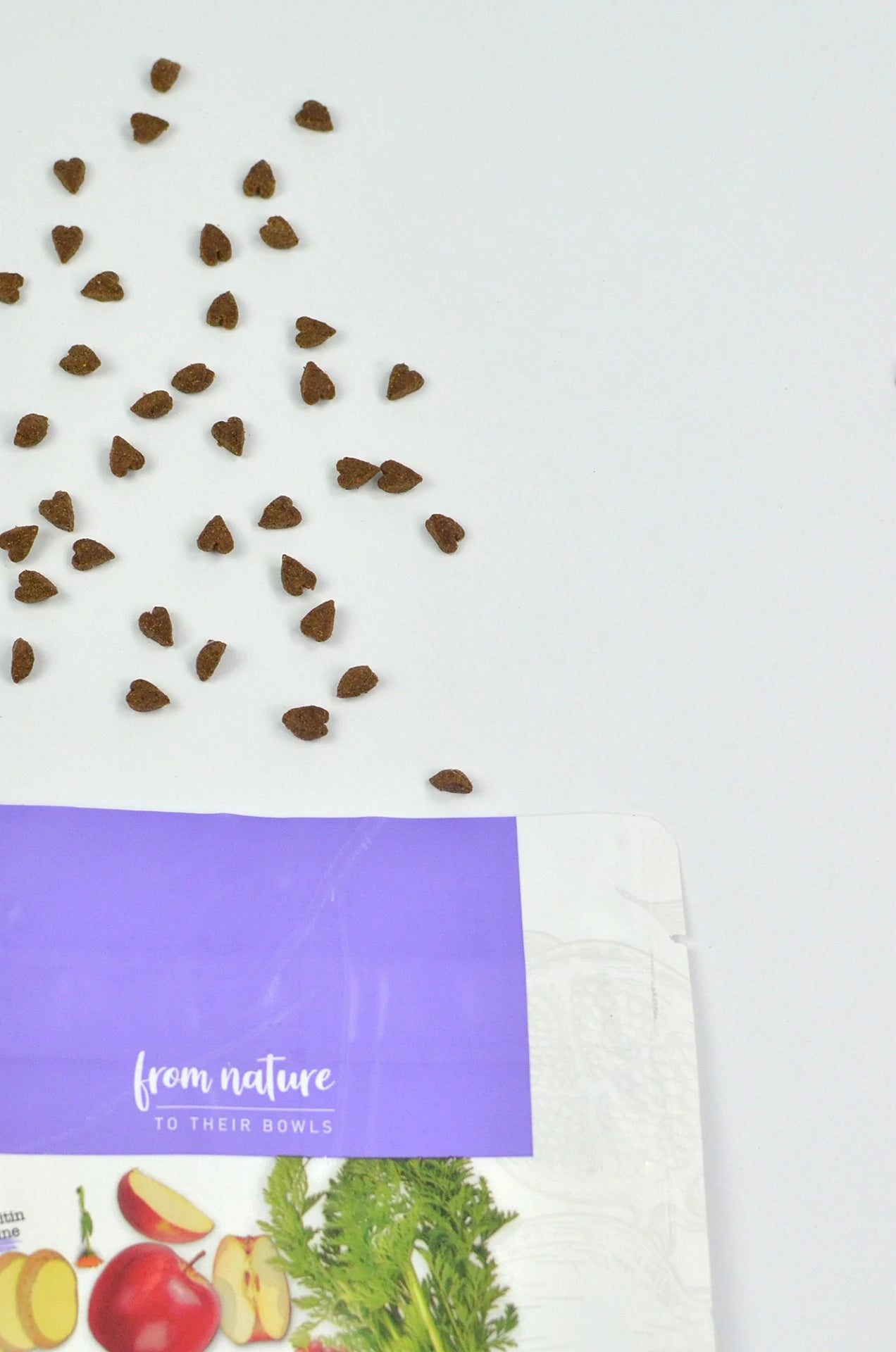 COMPOSIÇÃO | Carne de frango fresca (min. 20%), amido de batata, hidrolisado de frango (min. 11%), gordura de frango, legumes, levedura de cerveja, atum, hidrolisado de fígado de frango, óleo de peixe rico em Ω3, fibras vegetais (maçã, chicória, cenoura), substâncias minerais, cloridrato de glucosamina (1250-1350 mg/kg), sulfato de condroitina (730-780 mg/kg), mananoligossacarídeos, frutooligossacarídeos, taurina, botânicos (calêndula, sálvia, feno-grego, endro), extratos vegetais (frutas vermelhas, dente de leão, folhas de hortelã, semente de chá verde, tomilho, alecrim), antioxidantes naturais.